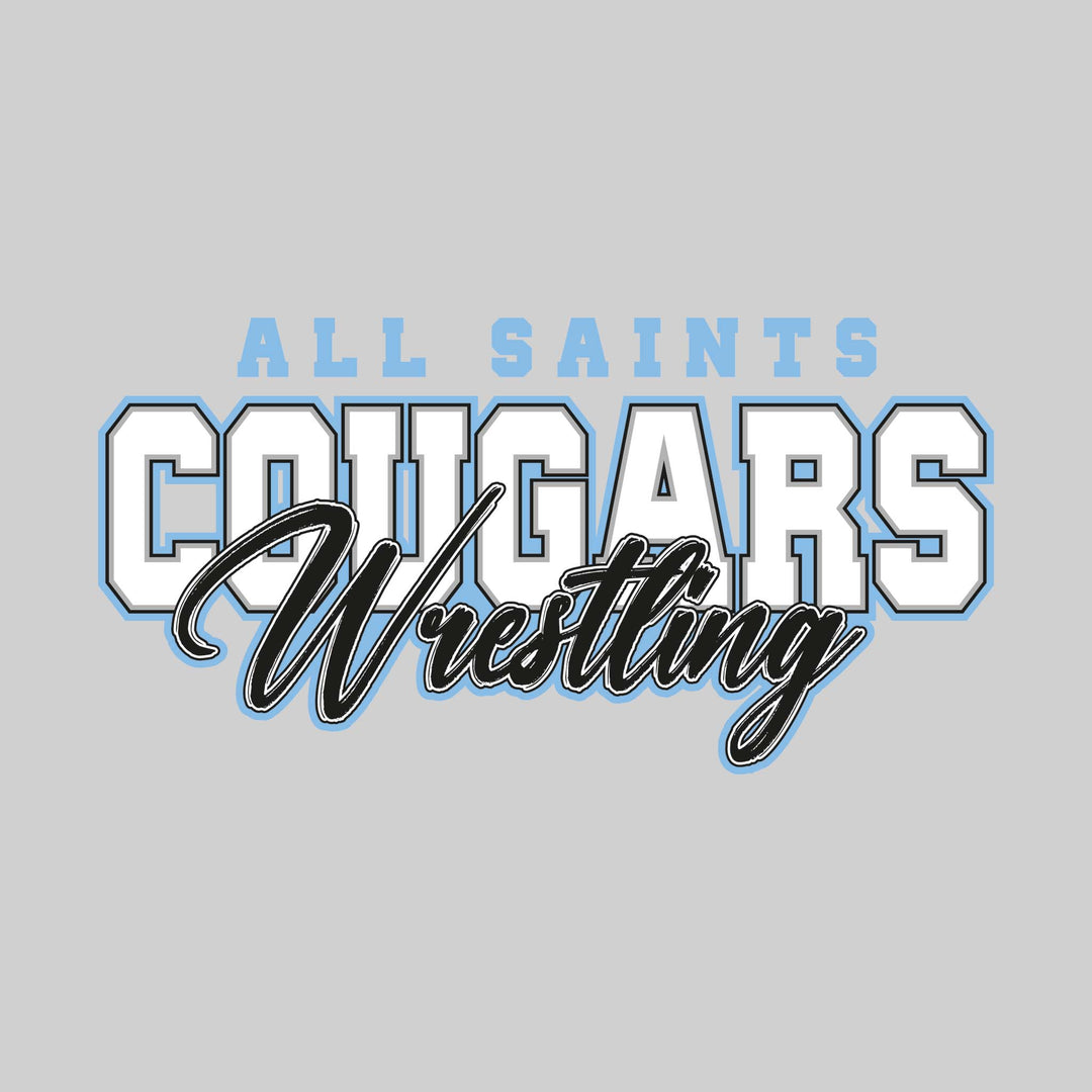 All Saints Cougars - Wrestling - Outlined Mascot Name with Cursive Wrestling