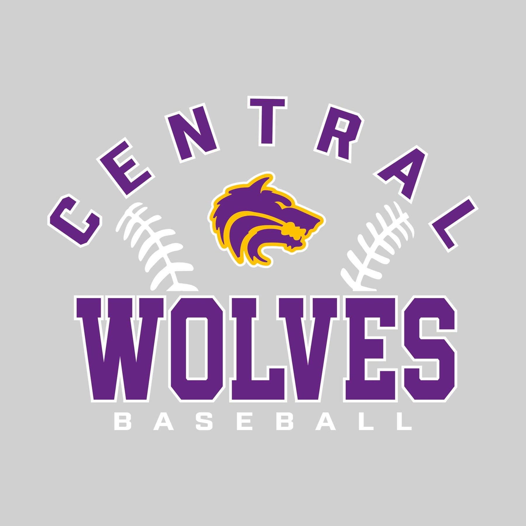 Central Wolves - Baseball - Arched School Name with Baseball Stitches & Mascot