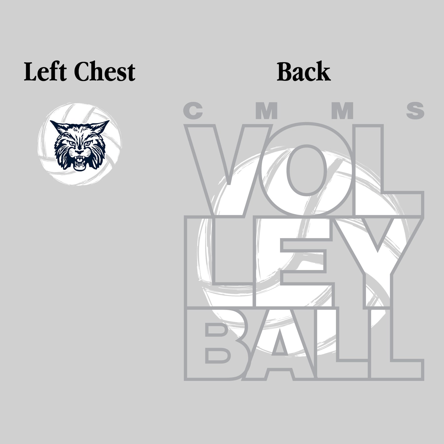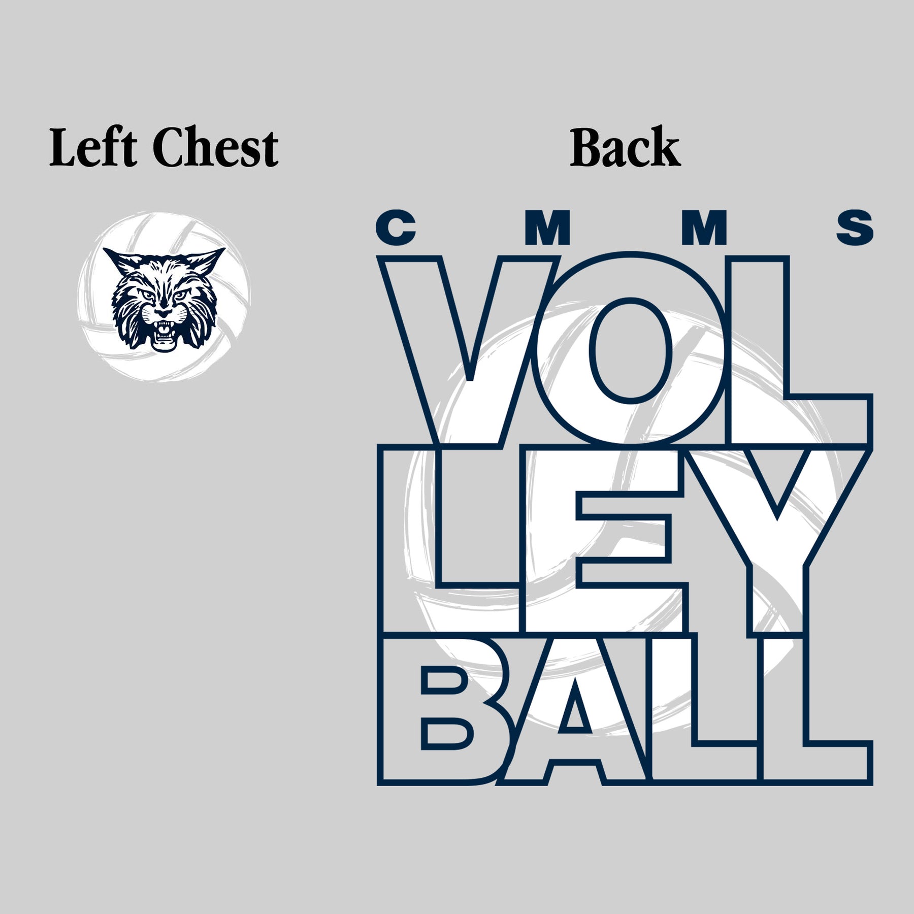 CMMS Bobcats - Volleyball - Stacked Letters with Sketched Volleyball Inset - Gray