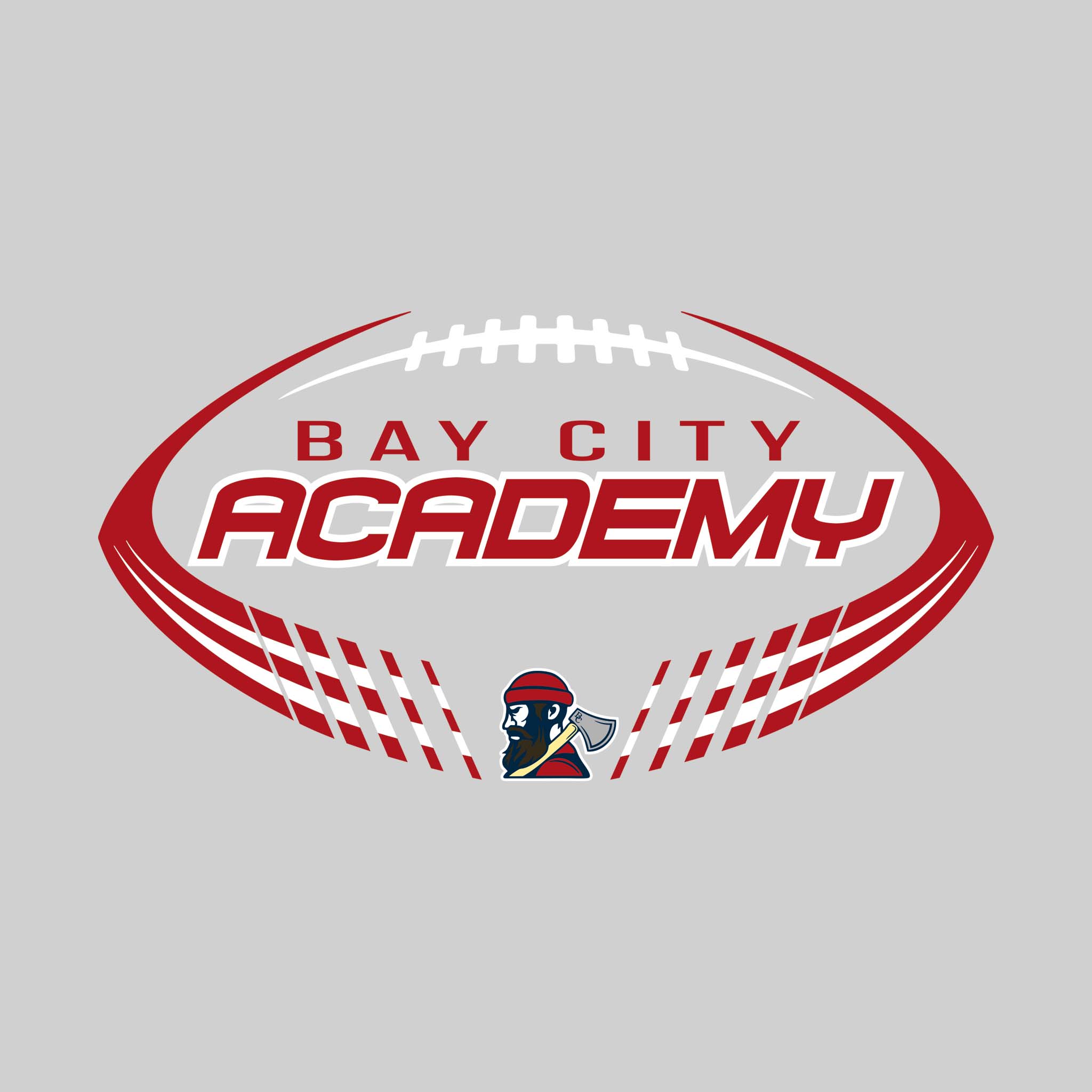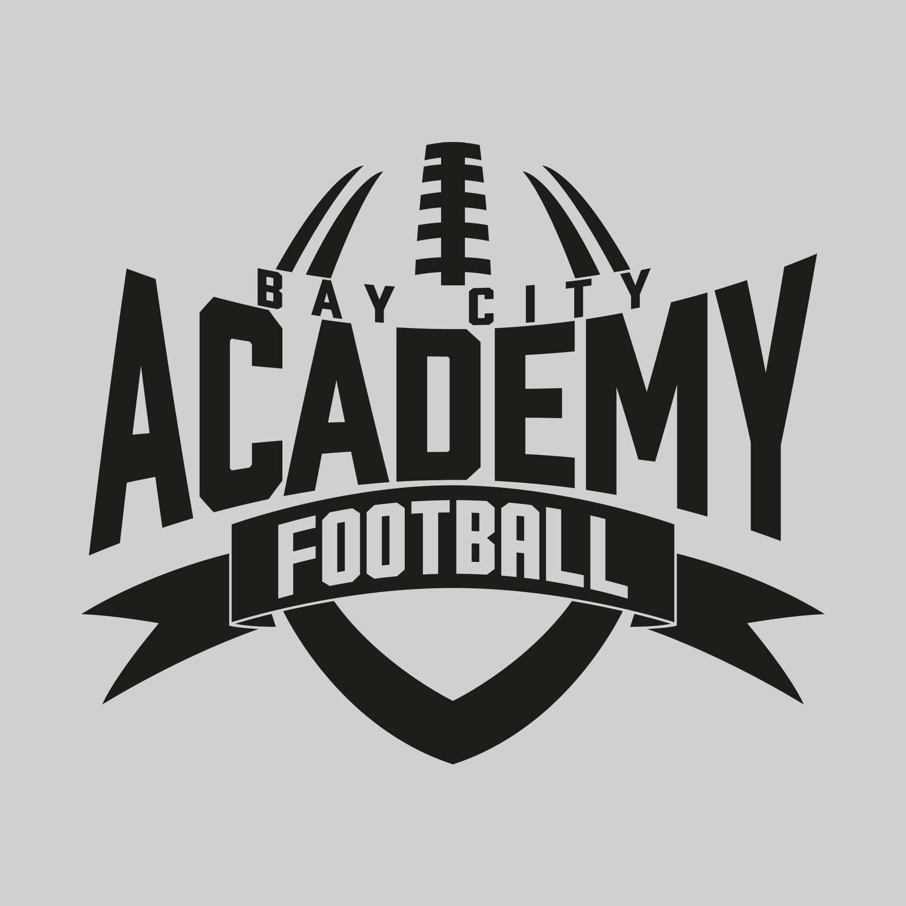 Bay City Academy - Football - Monochrome - School Name with Football Shape and Banner