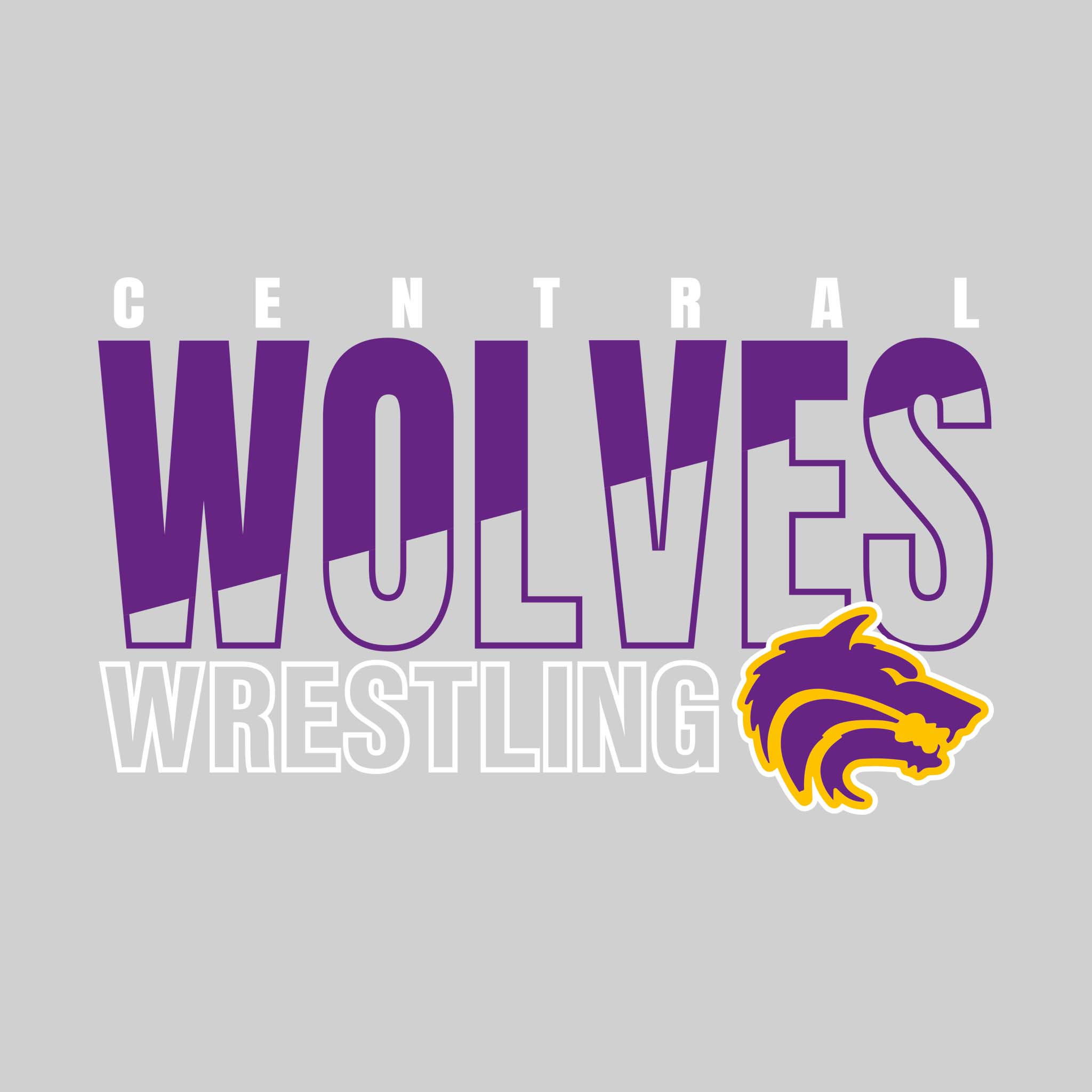 Central Wolves - Wrestling - Outlined Mascot Name with Cursive Wrestling