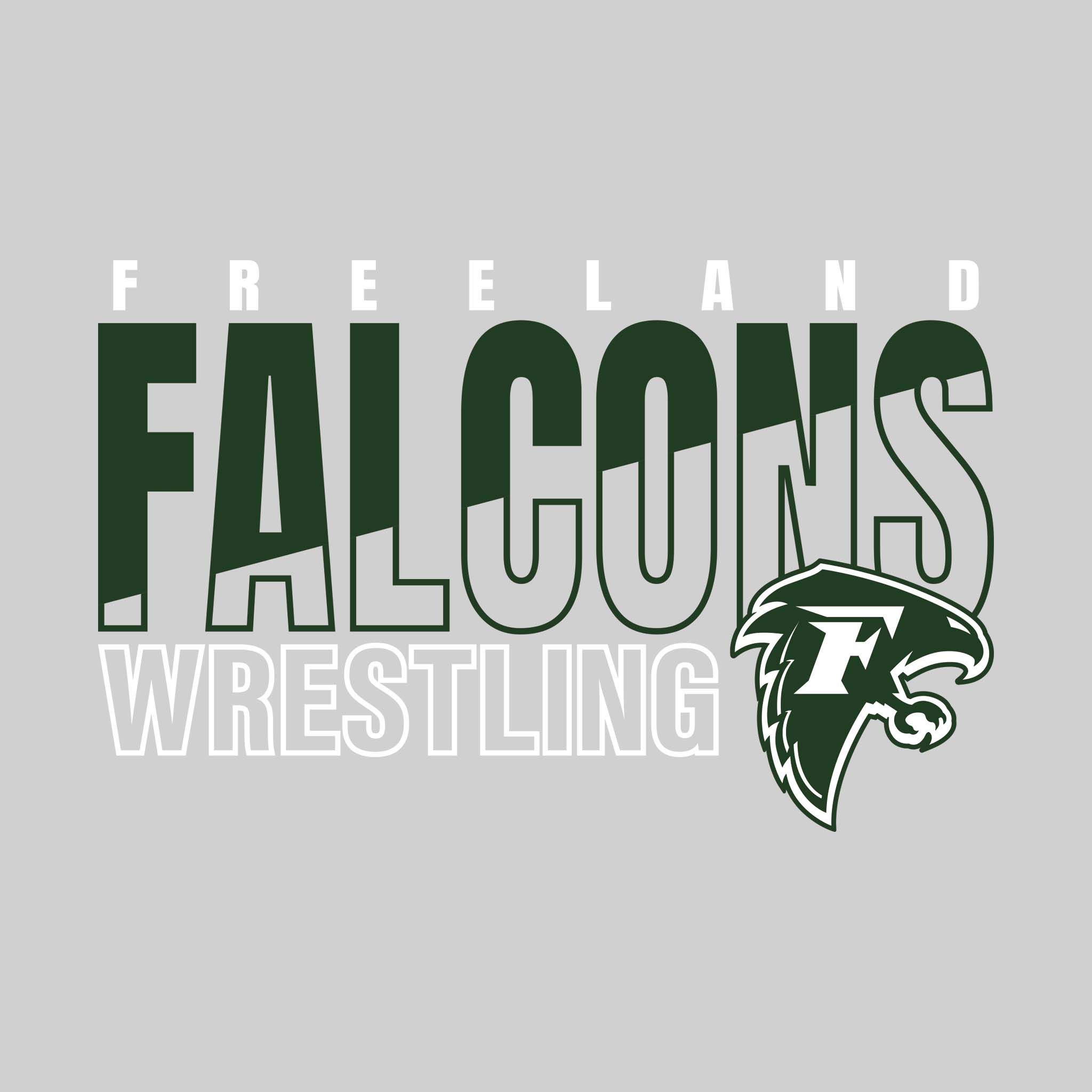 Freeland Falcons - Wrestling - Outlined Mascot Name with Cursive Wrestling