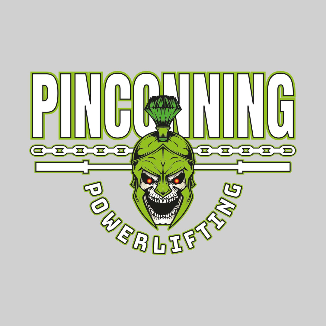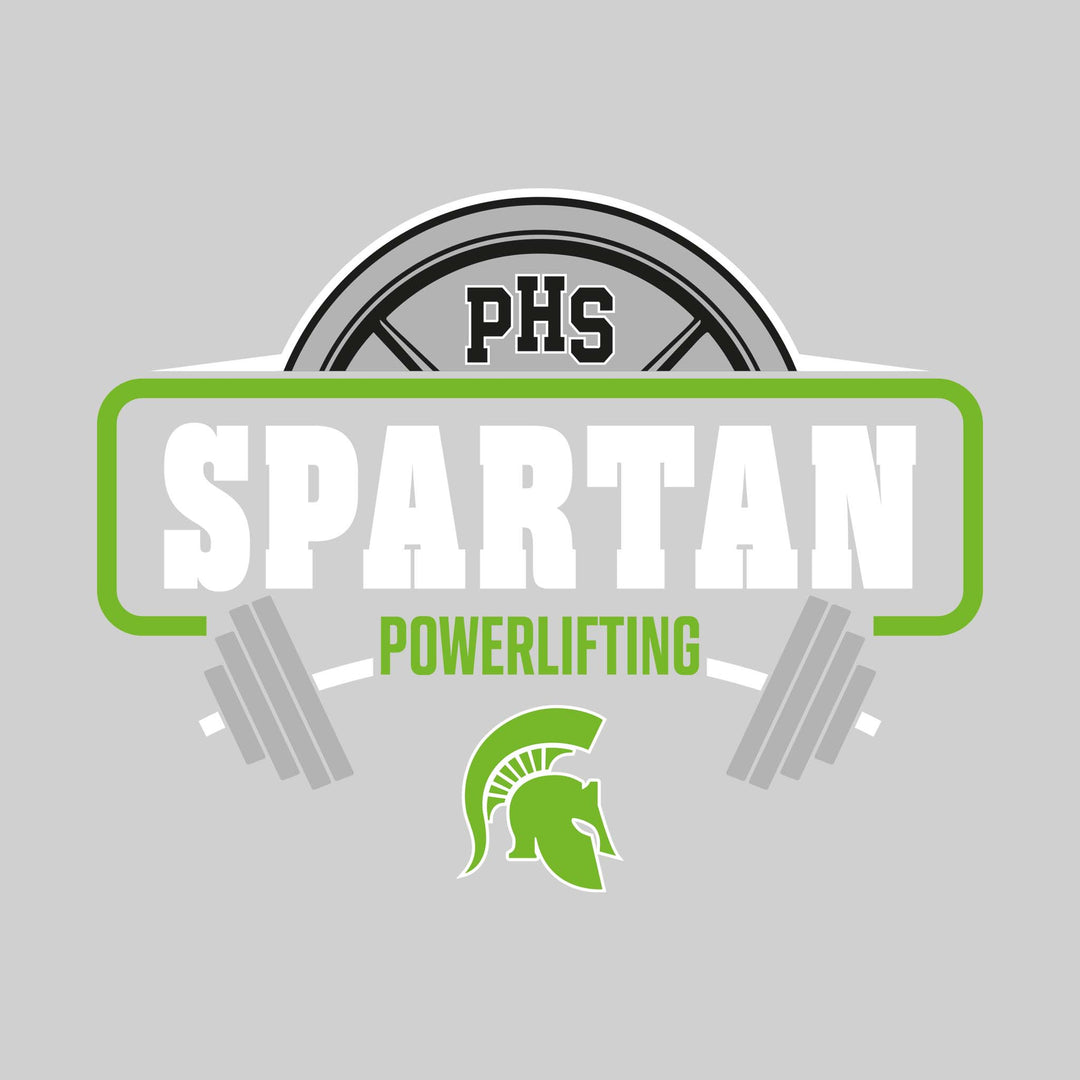 Pinconning Spartans - Powerlifting - School Name with Spartan Skull & Chain & Bar