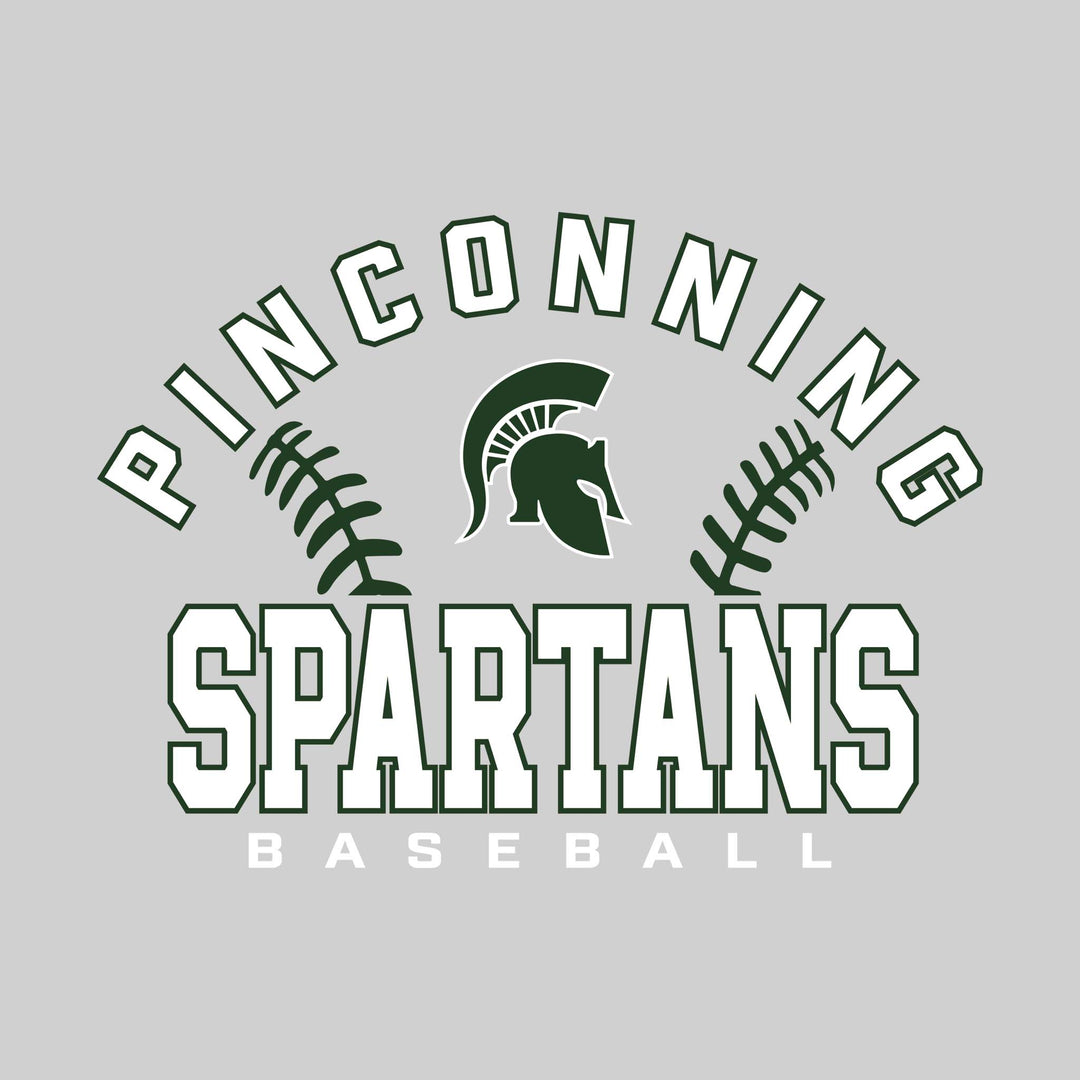 Pinconning Spartans - Baseball - Arched School Name with Baseball Stitches & Mascot