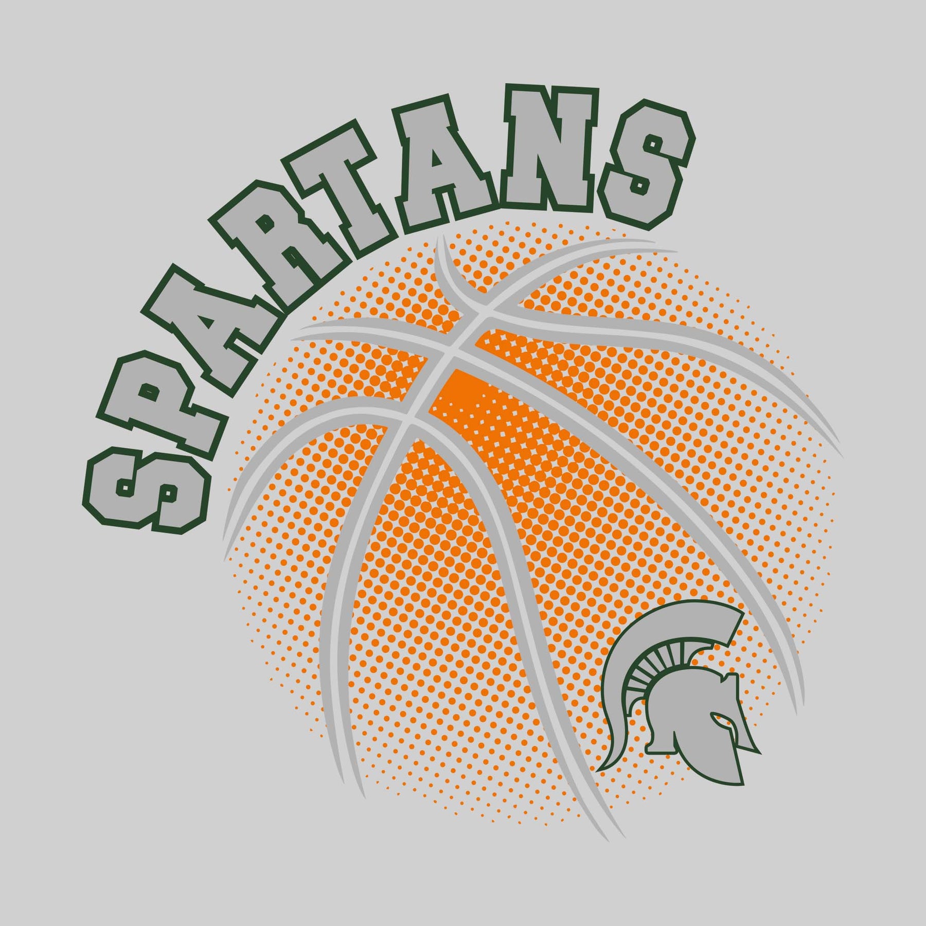 Pinconning Spartans - Basketball - Halftone Basketball with Mascot