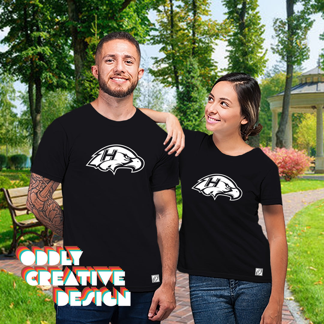 Heritage Hawks - Spirit Wear - Black & White - Mascot Name with Back Mascot