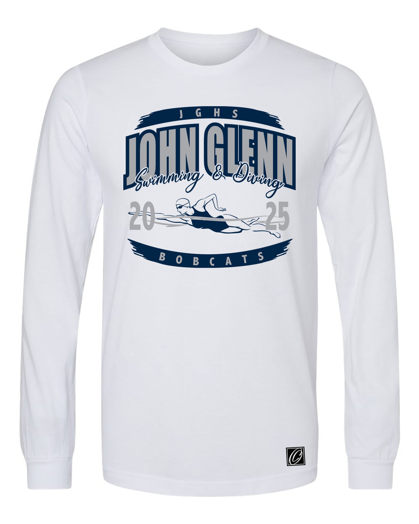 Adult - John Glenn Bobcats - Girls Swimming & Diving - 2025 - Bella Canvas Heather CVC Crewneck Long Sleeve Tee