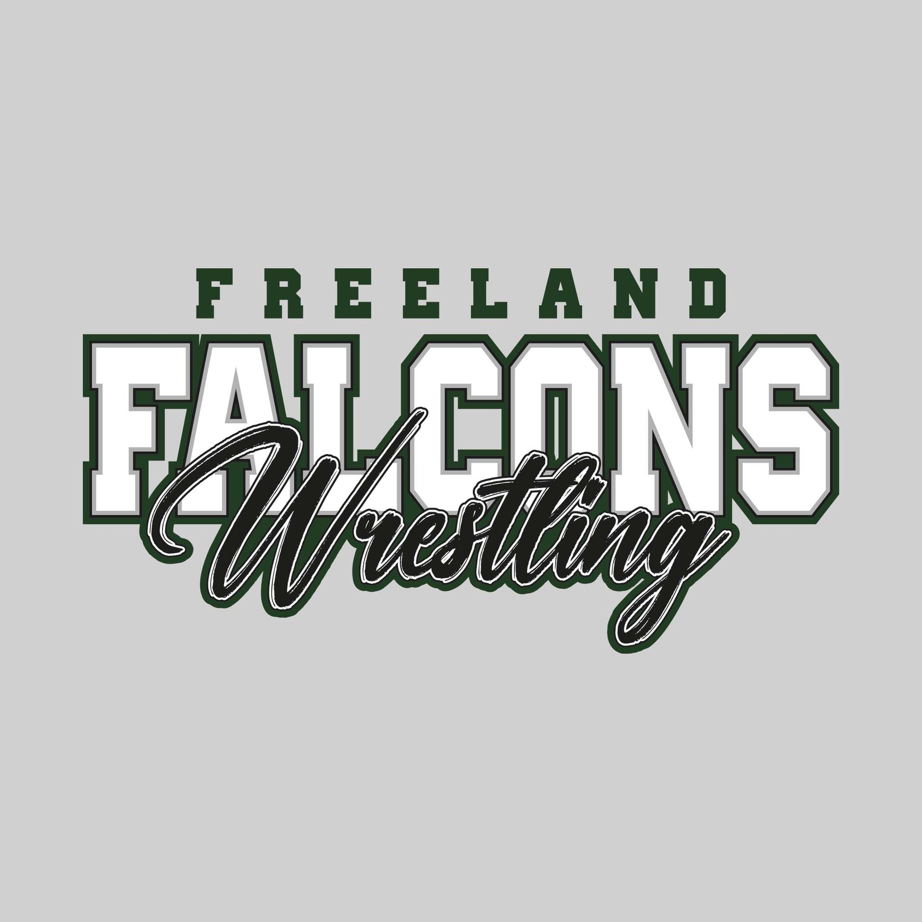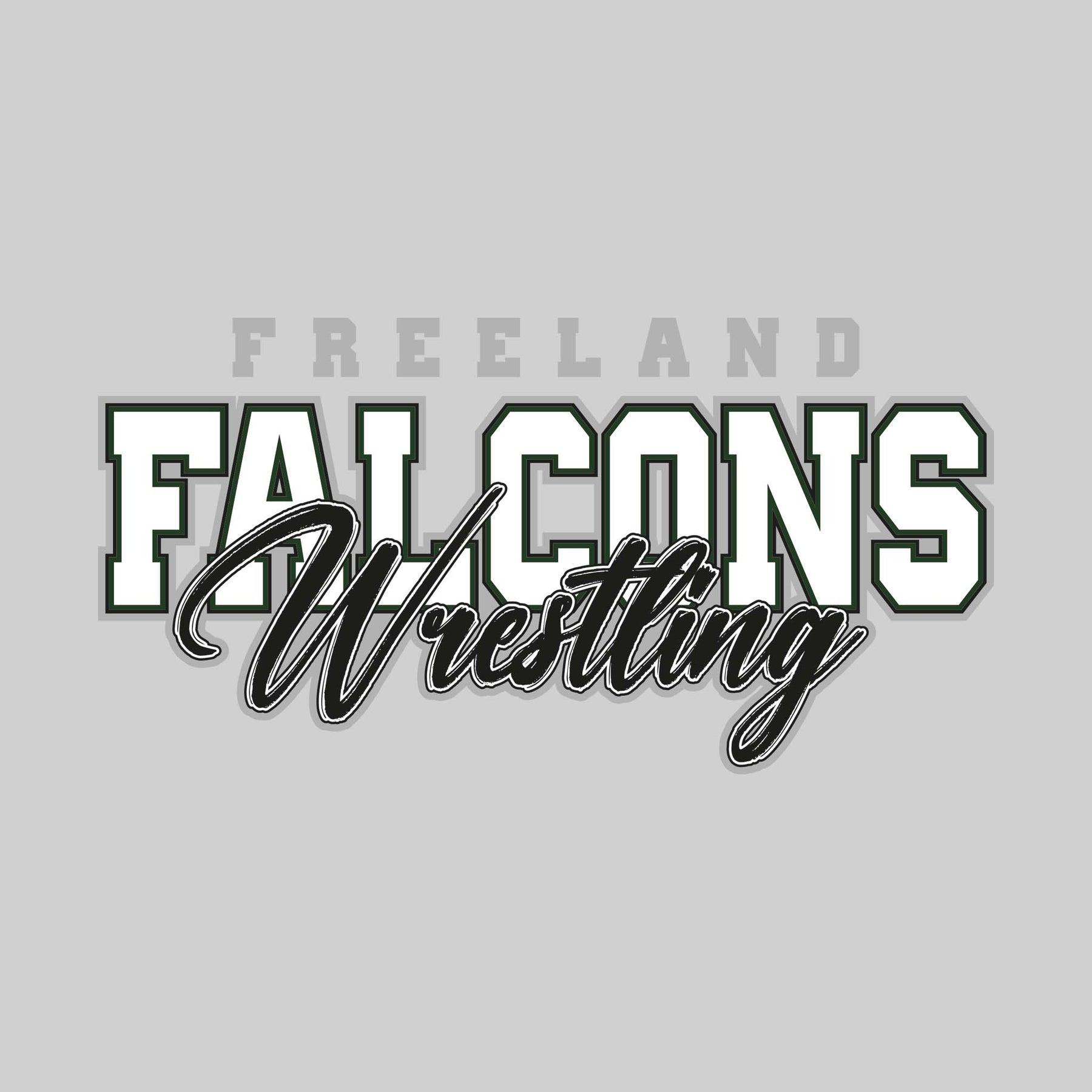 Freeland Falcons - Wrestling - Outlined Mascot Name with Cursive Wrestling